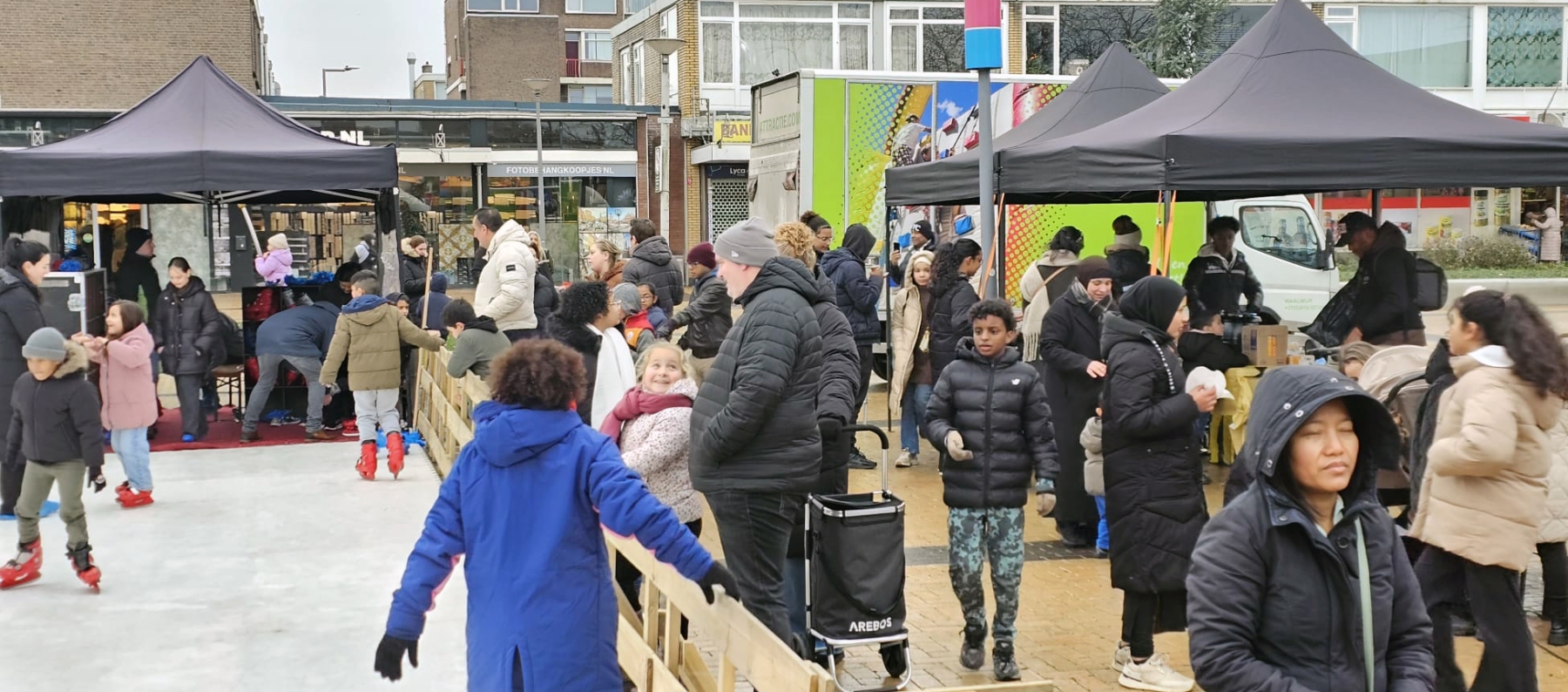Het was een gezellige boel rondom de feestdagen in ons winkelgebied. Er kon zelfs worden geschaatst. Een visuele terugblik!