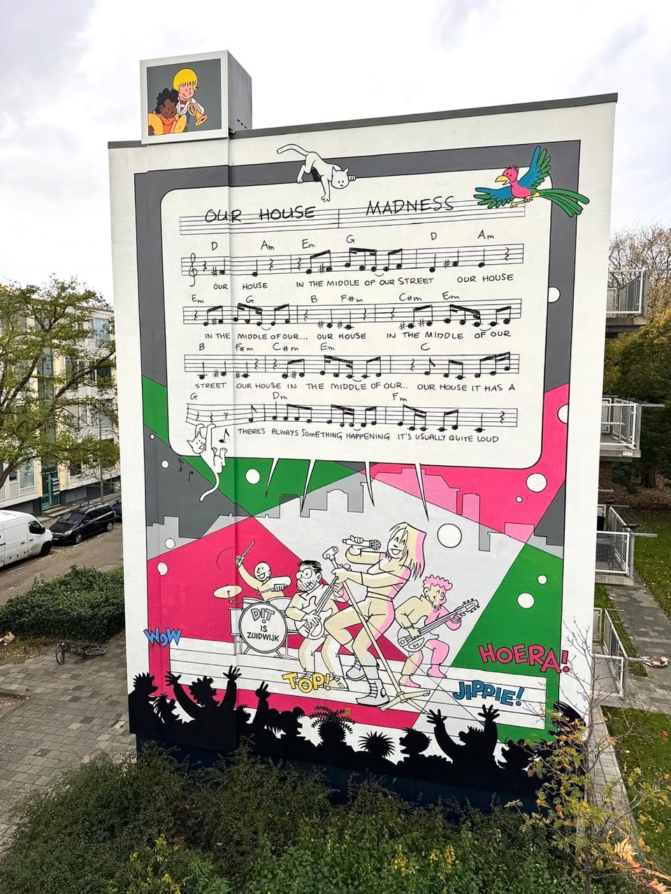 Woensdag 7 Januari 2026 officiële inhuldiging muurschildering aan de Diepenhorst met een live-uitvoering van het nummer ‘Our House’ door de Rotterdams band DIT.